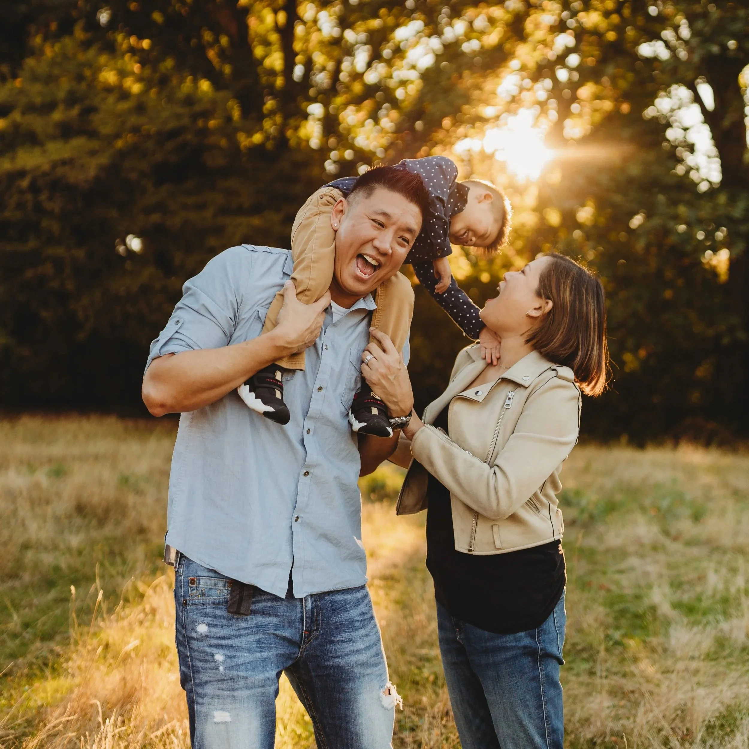 The photos I'm most proud of from fall sessions are never the perfectly posed ones. They're the dad who threw his kid in the air and they both completely lost it laughing. The mom who just pulled her whole family in and held them. The toddler who went absolutely feral in a pile of leaves while everyone stopped trying to manage it and just enjoyed it.